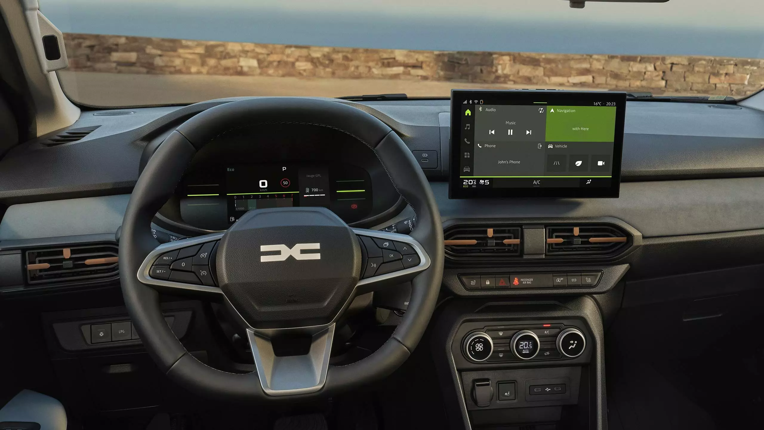 El nuevo Sandero Stepway integra navegación conectada con mapas actualizados y tráfico en tiempo real, cargador inalámbrico de móvil integrado y sistemas multimedia que hacen cada trayecto más cómodo y conectado.